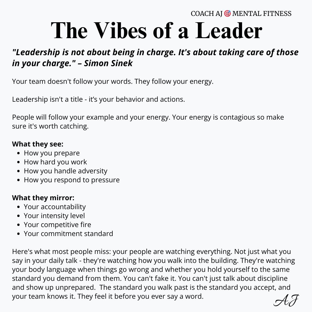 This is what most leaders miss: your people are watching everything. Not just your speeches or your game plans - they're watching how you walk into the building. They're watching your body language when things go wrong. They're watching whether you hold yourself to the same standard you demand from them.