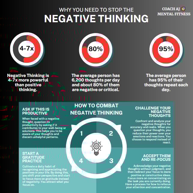 Bottom Line: Negative thinking is a powerful force that can derail your progress, sap your energy, and create self-fulfilling limitations. To overcome it, you must become aware of your thought patterns, reframe negativity, and focus on strategies that promote mental resilience and clarity.