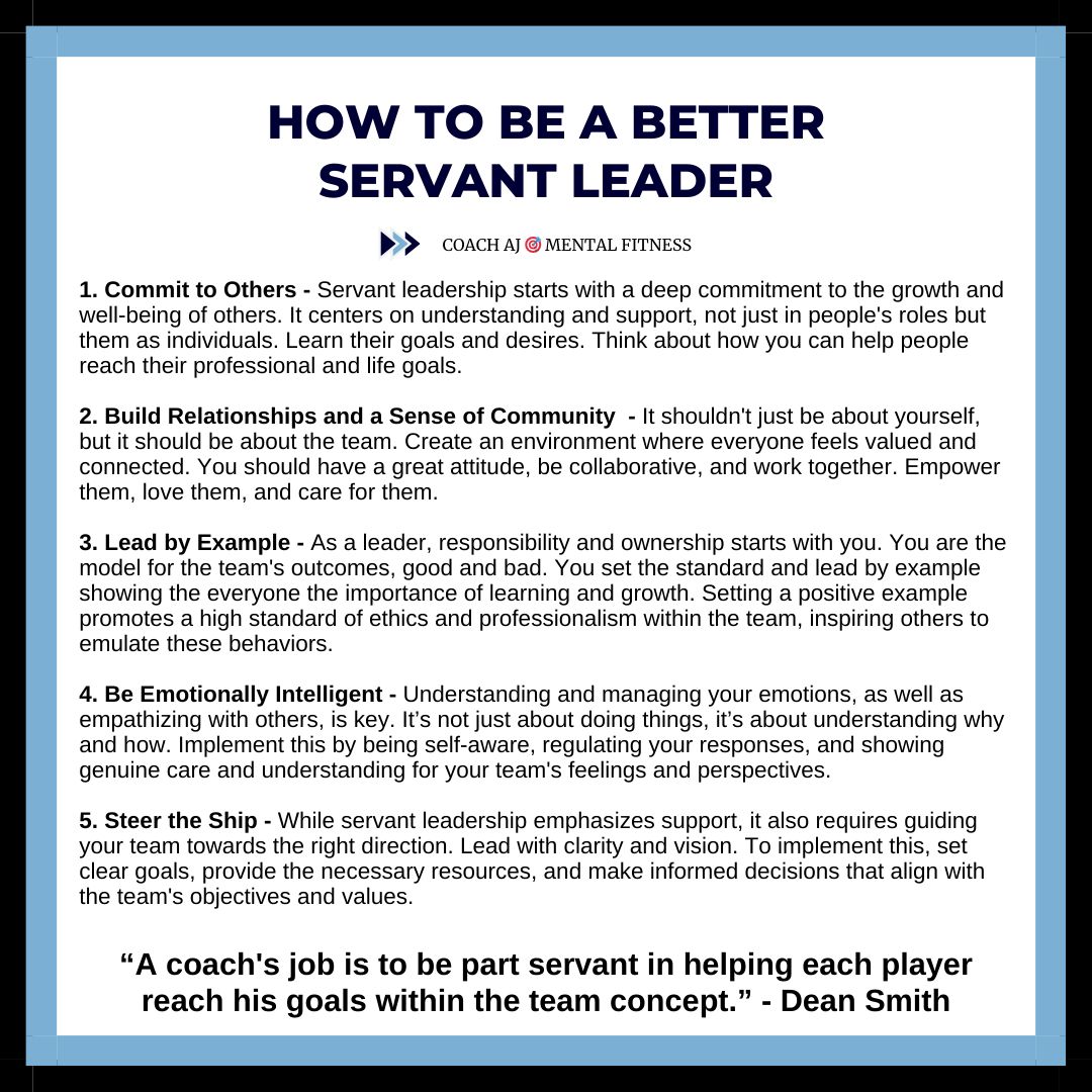Why this matters: Servant leadership flips the traditional hierarchical thinking. Instead of the team serving the leader, the leader serves the team. That doesn’t mean coddling people or removing accountability - it means creating the conditions for others to thrive.